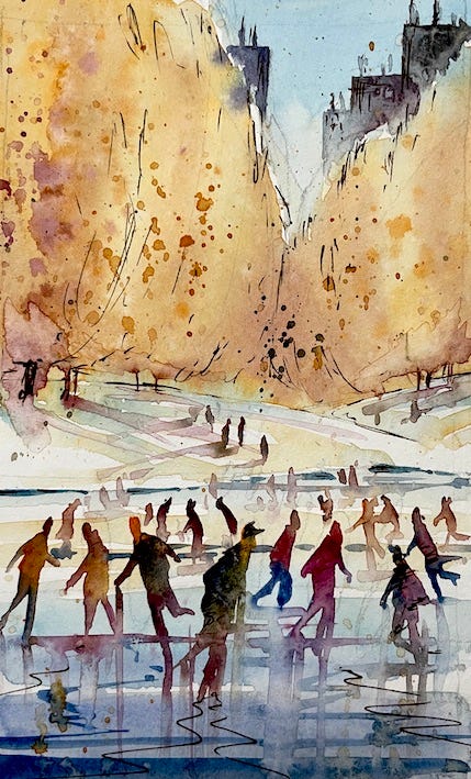 And if you want a little bit more practice, why not consider joining my Patreon site? There’s lots of tutorials available on there every week, including an exclusive live broadcast just for Patreon members, and this week’s was ‘Skating in the City.’ You can find it by following the link here: https://www.patreon.com/andrewgeesonloosewatercolours